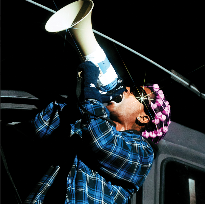 GR1M can be seen in the bottom left corner of the main cover art & on a multitude of signs, billboards, and packaging. To me, he is the character that really captures the incredible rage & chaos of A$AP Rocky’s performances.